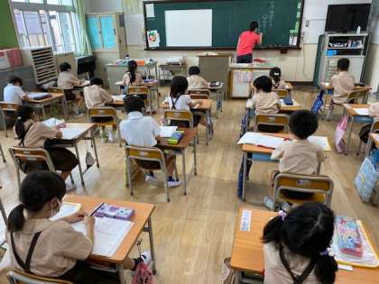 1年生1・2組の授業のようすです。どちらも国語で、本読みをしたりしています。