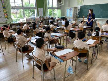 本日2時間目、3年生1・2組の授業のようすです。どちらも算数で、「表とグラフ」の学習をしていました。