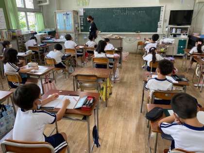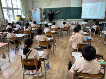 本日3時間目、3年生1・2組の授業のようすです。どちらも社会で、工場で働く人々の仕事についての学習をしています。