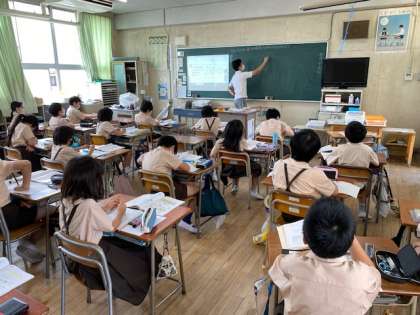 本日3時間目、4年生1・2組の授業のようすです。どちらも算数で、四角形の対角線の交わり方についての学習をしています。