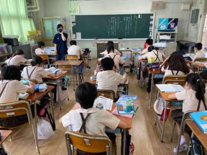 本日3時間目、5年生1・2組の授業のようすです。どちらも国語で、新聞記事を読み比べる学習をしています。