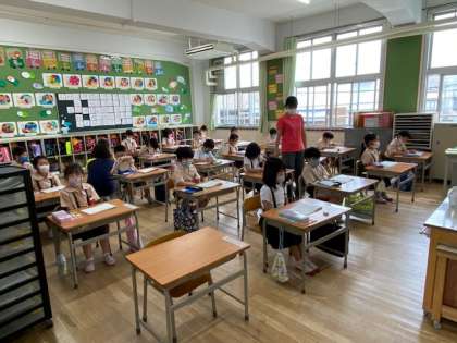 本日3時間目、1年生1・2組の授業のようすです。どちらも算数で、引き算の学習をしています。