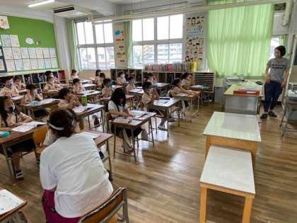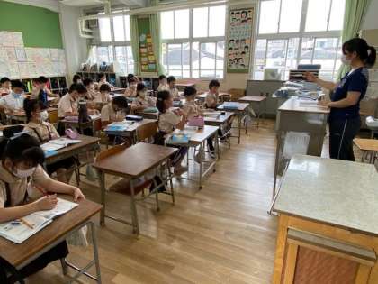 本日3時間目、2年生1・2組の授業のようすです。どちらも算数で、大きな数から1小さい数の学習等をしています。