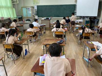 本日2時間目、3年生1・2組の授業のようすです。どちらも国語で、読書をしています。1組は図書館で借りてきたものを読んでいます。