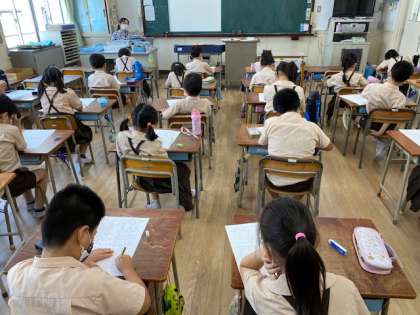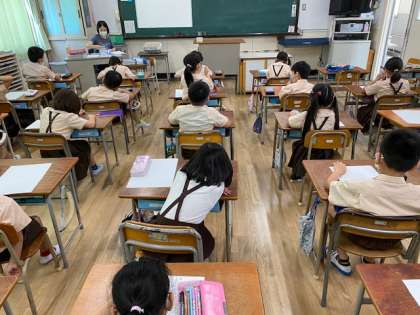 本日2時間目、2年生1・2組の授業のようすです。どちらも算数で、テストをしています。