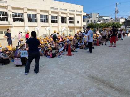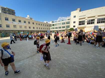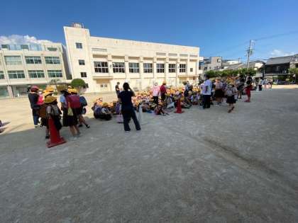 本日6時間目、「台風接近による暴風警報が発令された」との設定で、集団下校するための避難訓練をしました。各地域ごとに地域長の5・6年生がプラカードを持って立ち、そこへ他の学年が集合するという流れでした。