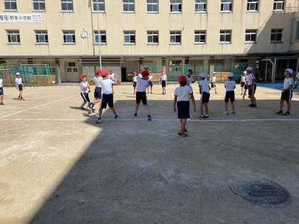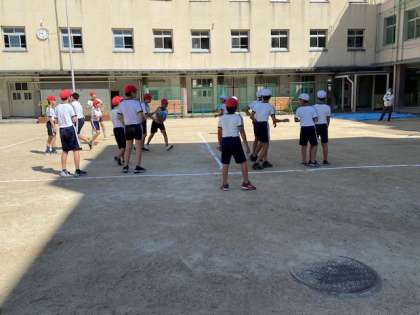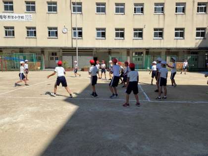 暑いのでできるだけ日陰になるところで、ドッジボールをしました。