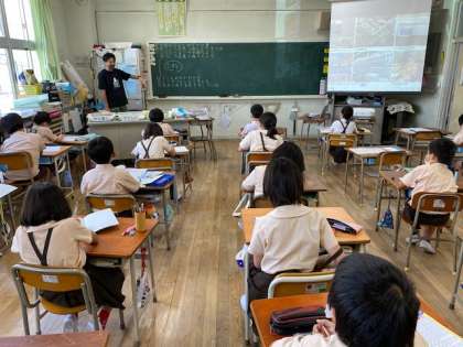 本日3時間目、3年生1・2組の授業のようすです。どちらも社会で、「店ではたらく人びとのようす」の学習をしています。