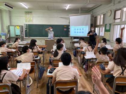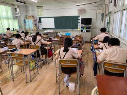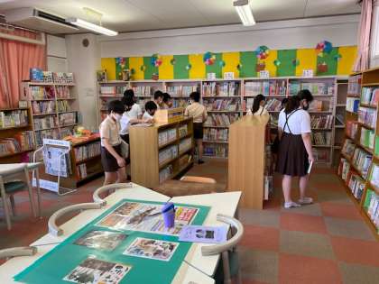本日3時間目、6年生1・2組の授業のようすです。1組は英語で、オリンピックで観たい競技種目を聴いて答える活動をしています。2組は図書の時間で、図書館で本を借りた人から教室に戻って読んでいます。