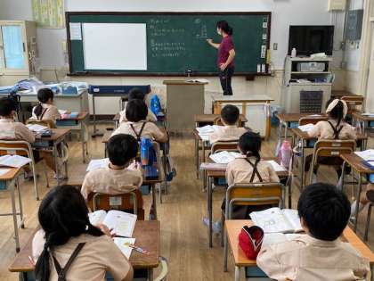 本日2時間目、2年生1・2組の授業のようすです。どちらも算数で、2ケタの足し算の学習をしています。