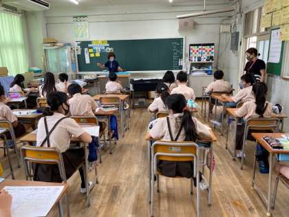 本日2・3時間目、5年生を対象に他校の栄養教諭による食育が行われました。2時間目は5年1組です。