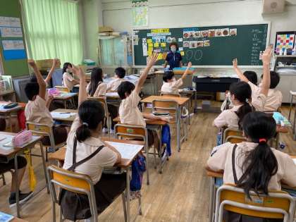 「お米について知ろう」ということで、クイズ形式でお米についての知識を試すなどして授業を進めていただきました。子どもたちも興味深く聞き入っていました。
