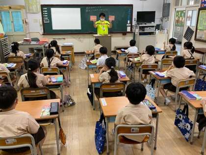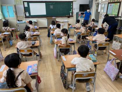本日2時間目、1年生1・2組の授業のようすです。どちらも算数で、ブロックを使って「10より大きい数」の学習をしています。