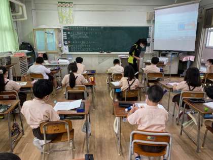 本日2時間目、3年生1・2組の授業のようすです。どちらも算数で、「あまりのあるわり算」の学習をしています。