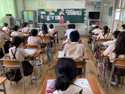 本日2・3時間目、6年生を対象に他校の栄養教諭による食育が行われました。2時間目は6年1組です。