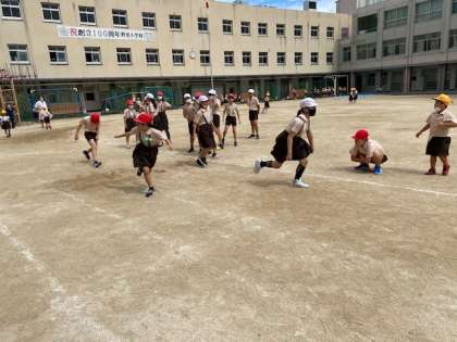 みんな運動会に向けて、トラックでリレーをしたり、直線コースを走ったりしています。