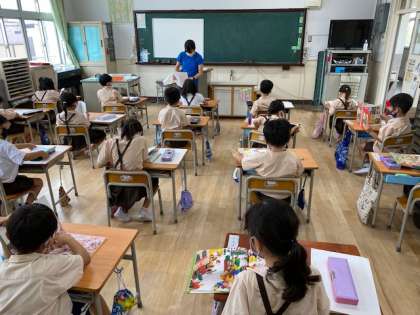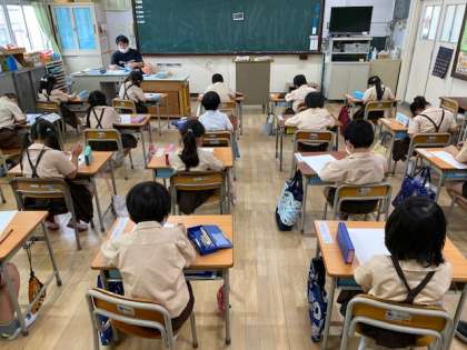 本日3時間目、1年生1・2組の授業のようすです。どちらも算数で、「10より大きい数」のプリント学習をしています。