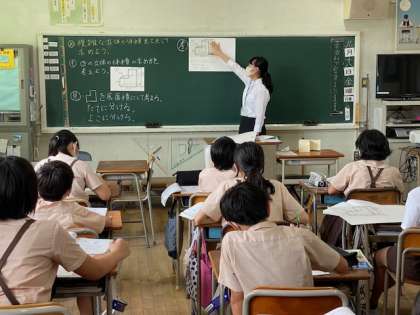 本日5時間目、6年1組で教育実習生による算数の研究授業が行われました。