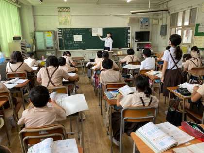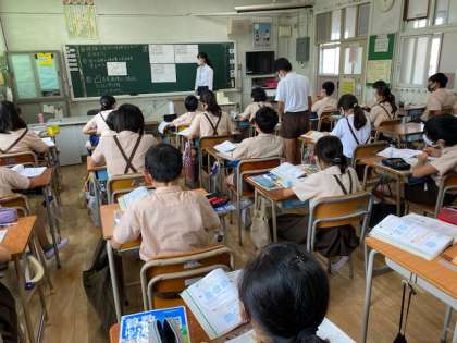 複雑な形の立体の体積を求める方法を子どもたちに考えさせ、発表させる授業でした。4種類の求め方が出てきました。みんな真剣に取り組んでいました。
