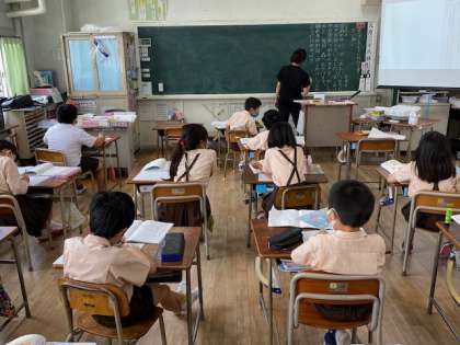 本日2時間目、3年生1・2組の授業のようすです。どちらも国語で、「あらすじをもとに物語を書こう」という設定でみんな一生懸命に書いています。