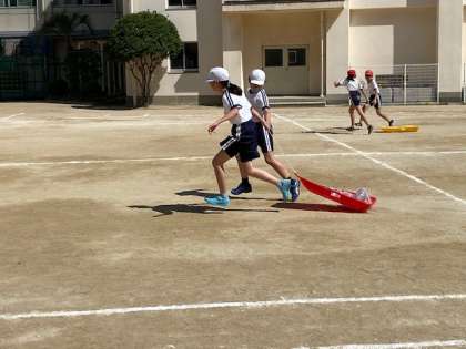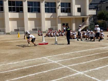 EX体操等をした後、昨日できなかった学年競技の入場から競技、退場までを練習しました。