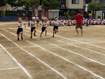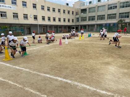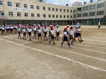 学年競技や個人走の入場から競技、そして退場までの流れを一通り行いました。