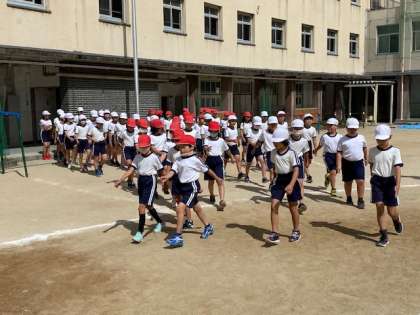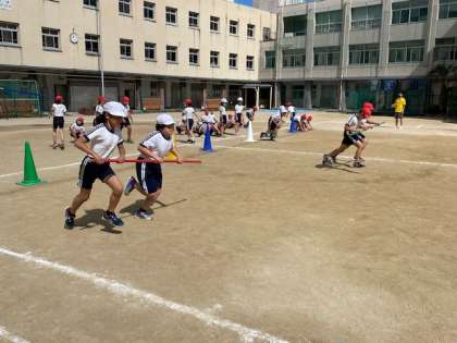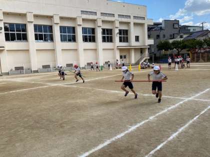 学年競技と個人走の入場から競技、退場までの流れを何度も練習しました。