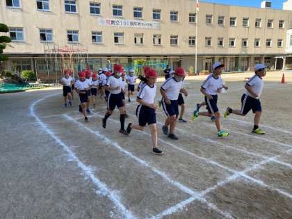 EX体操の後、個人走と学年競技の入場、競技、退場の練習をしました。