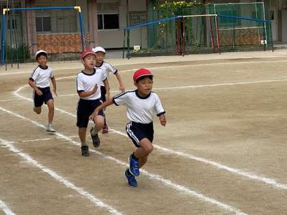 学年競技と個人走の入場から競技、退場までを練習しました。