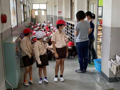 本日2時間目、2年生は運動場も体育館も使えないので、教室前の廊下で運動会の整列のみの練習を行いました。