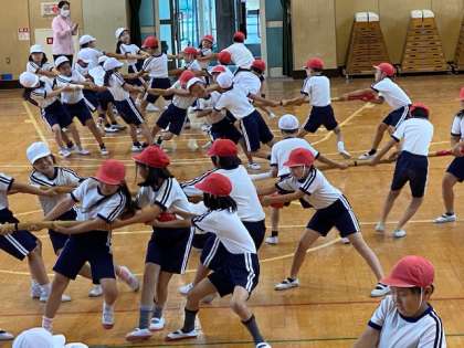 本日3時間目、4年生との合同練習の後、3年生は学年競技の練習を行いました。