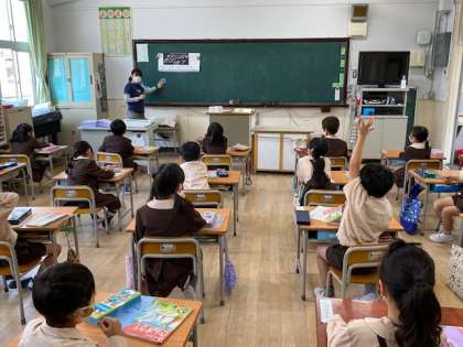 本日2時間目、1年生1・2組の授業のようすです。どちらも算数で、足し算の学習をしています。