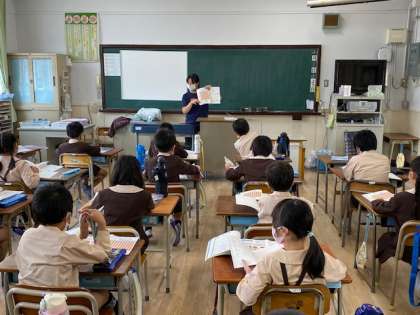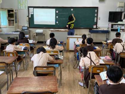 本日2時間目、2年生1・2組の授業のようすです。どちらも算数で、九九の六の段の学習をしています。
