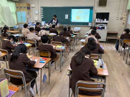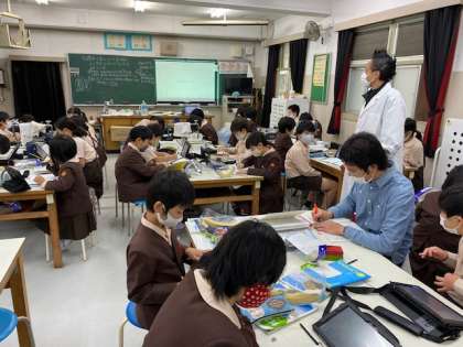 本日2時間目、4年生1・2組の授業のようすです。1組は総合で、「わたしの防災マニュアル」づくりをしています。2組は理科で、「春や夏とくらべて生き物のようすはどのようになっているのだろうか」について個人々々でまとめています。