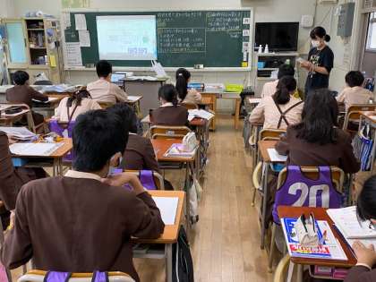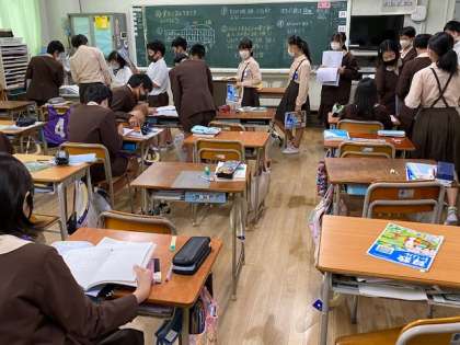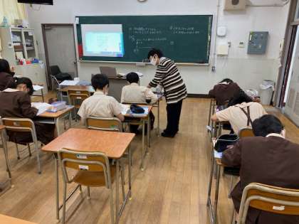 本日2時間目、6年生は本日も2クラスを3つのコースに分けて、算数の習熟度別授業を行っています。2つの直線グラフや表からわかることなど比例の学習をしています。
