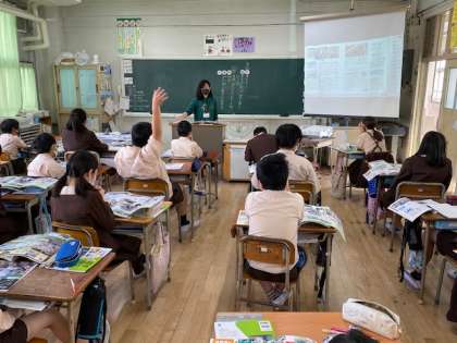 本日2時間目、5年生1・2組の授業のようすです。1組は理科で、「川の水による災害や川の水からのめぐみ」について考えています。2組は社会で、「自動車工場」について学習しています。