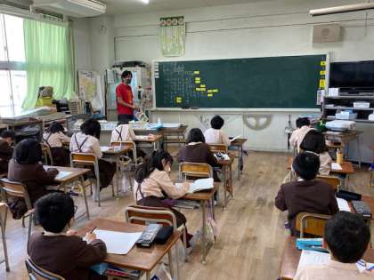 本日2時間目、3年生1・2組の授業のようすです。どちらも国語で、ローマ字の学習をしています。