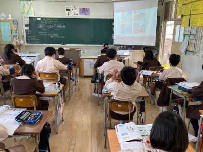 本日2時間目、5年生1・2組の授業のようすです。どちらも社会で、自動車製造についての学習をしています。