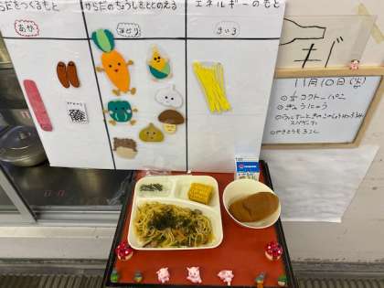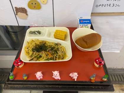 ウインナーときのこのしょうゆ風味スパゲッティ(きざみのり)
