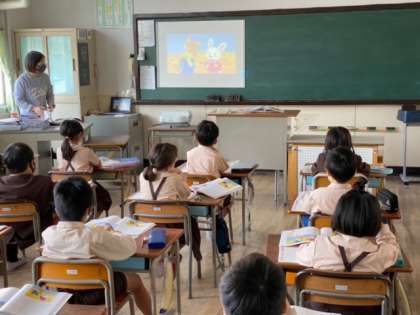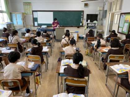 本日2時間目、2年生1・2組の授業のようすです。どちらも道徳で、「くりの み」(2つしかない栗の実をきつねに差し出すうさぎのやさしさに触れ、涙を流すきつねの姿から、困っている人をいたわる温かい心について考えさせる)という教材に触れています。