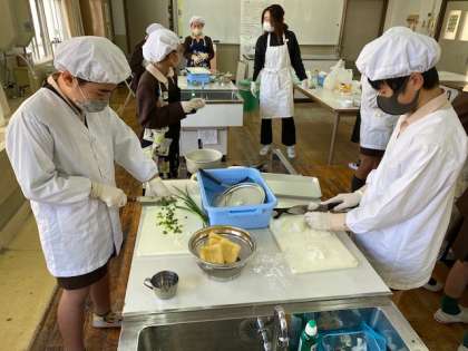 本日5・6時間目、5年1組で家庭科の調理実習がありました。
