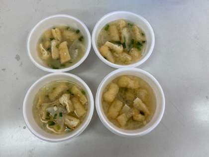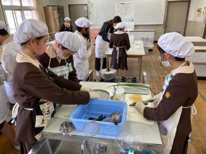 今日は「おみそ汁」を作りました。班員全員が必ず少しずつ材料を切るようにして進めました。