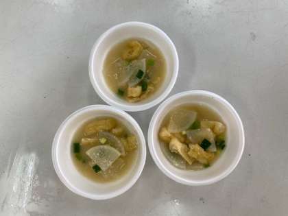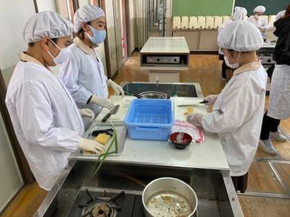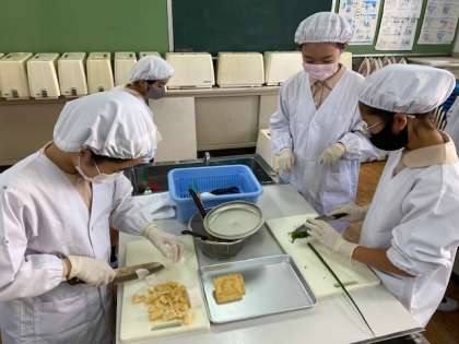 昨日の1組と同様「おみそ汁」を作りました。班員全員が必ず少しずつ材料を切るようにして進めました。