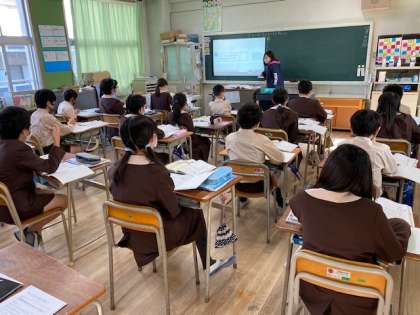 本日2時間目、5年生は全体を2つのコースに分けて、算数の習熟度別授業を行っています。「わり算の商の表し方を考えよう」というテーマで、学習に取り組んでいます。