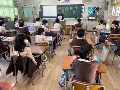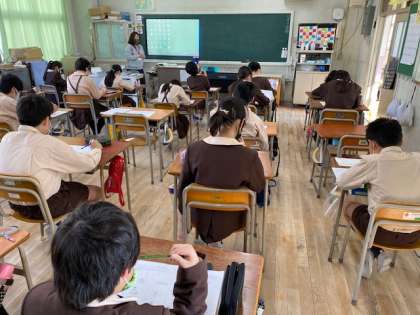 本日3時間目、5年生1・2組の授業のようすです。1組は英語のテストを、2組はテスト返却と答え合わせをしています。