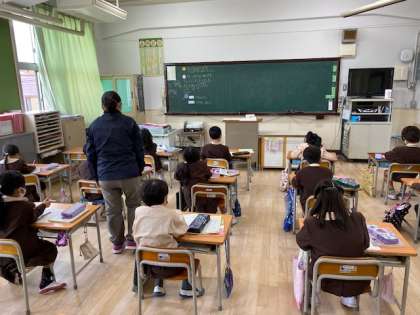 本日2時間目、1年生1・2組の授業のようすです。どちらも算数で、「2ケタひく1ケタ」の引き算の学習をしています。