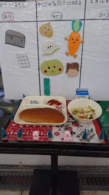 黒糖パン、牛乳、豆腐ハンバーグ、カリフラワーのスープ煮、固形チーズです。