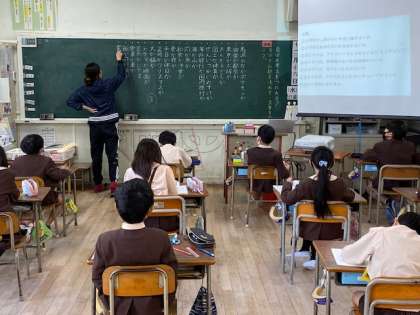 本日2時間目、3年生1・2組の授業のようすです。どちらも国語で、「自分の考えをつたえよう」ということで、自分でお題を決めて文章を書こうとしています。
