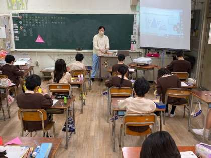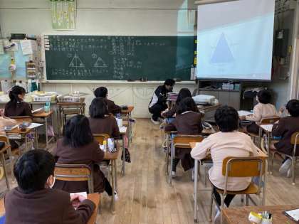 本日2時間目、3年生1・2組の授業のようすです。どちらも算数で、「二等辺三角形や正三角形の角の大きさ」をデジタル教科書を使いながら調べています。