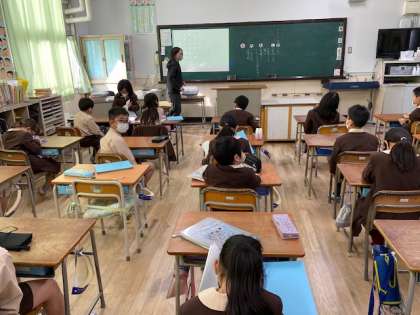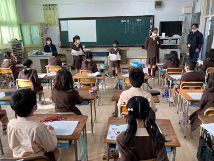 本日5時間目、2年生1・2組の授業のようすです。1組は学活で、月曜日の連絡を書いています。2組は国語で、作文を一人ずつみんなの前で読んで、意見をもらっています。